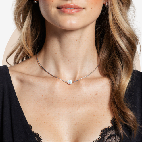 Omega Halskette mit weißem Opal (8 mm, AAA-Qualität) – 925 Silber, weiß rhodiniert | Licht & Harmonie