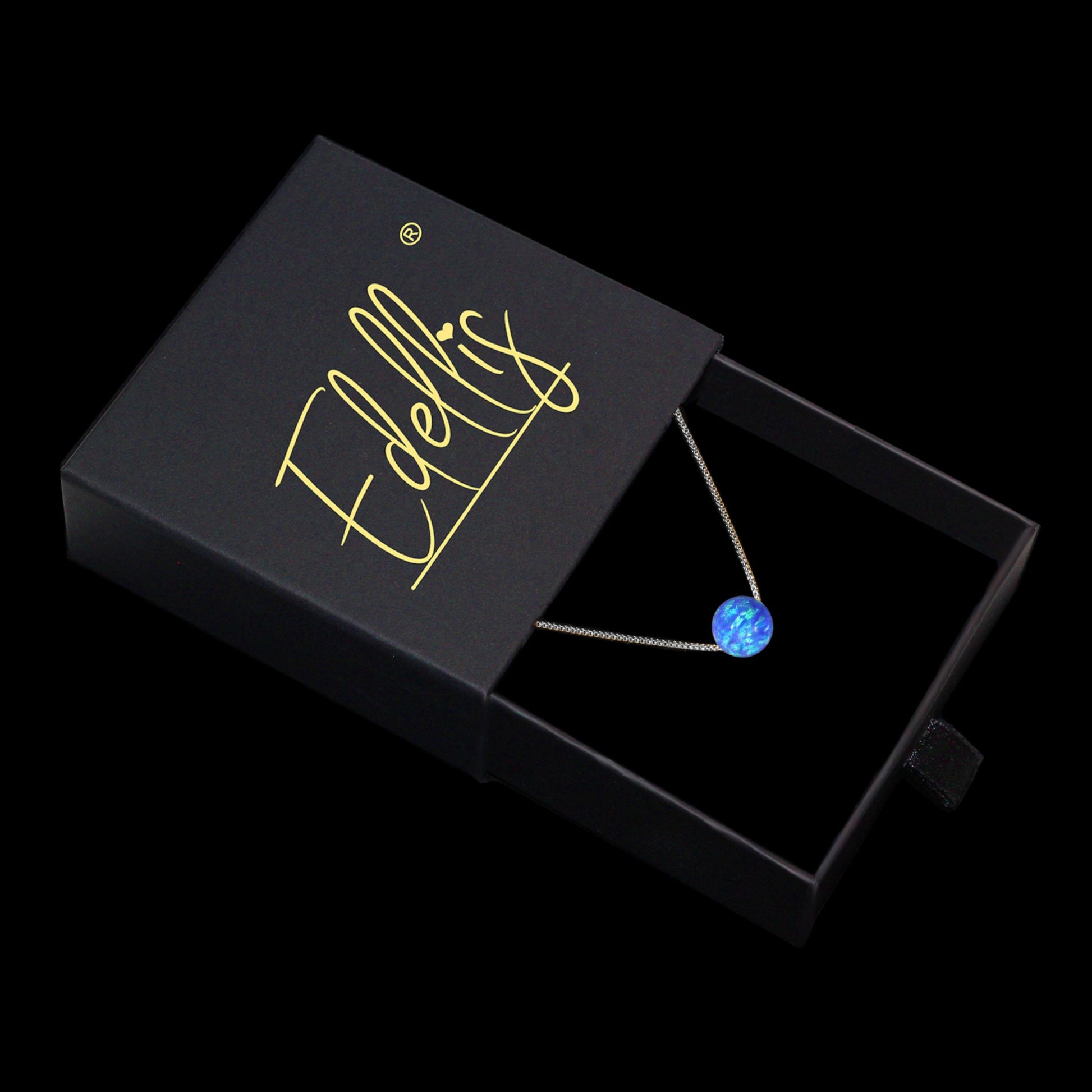 Edellis Blaue Opal Kugel Halskette mit 925 Sterling Silber Venezianer Box Kette | Schwebender Opal Anhänger | Länge 42–48 cm