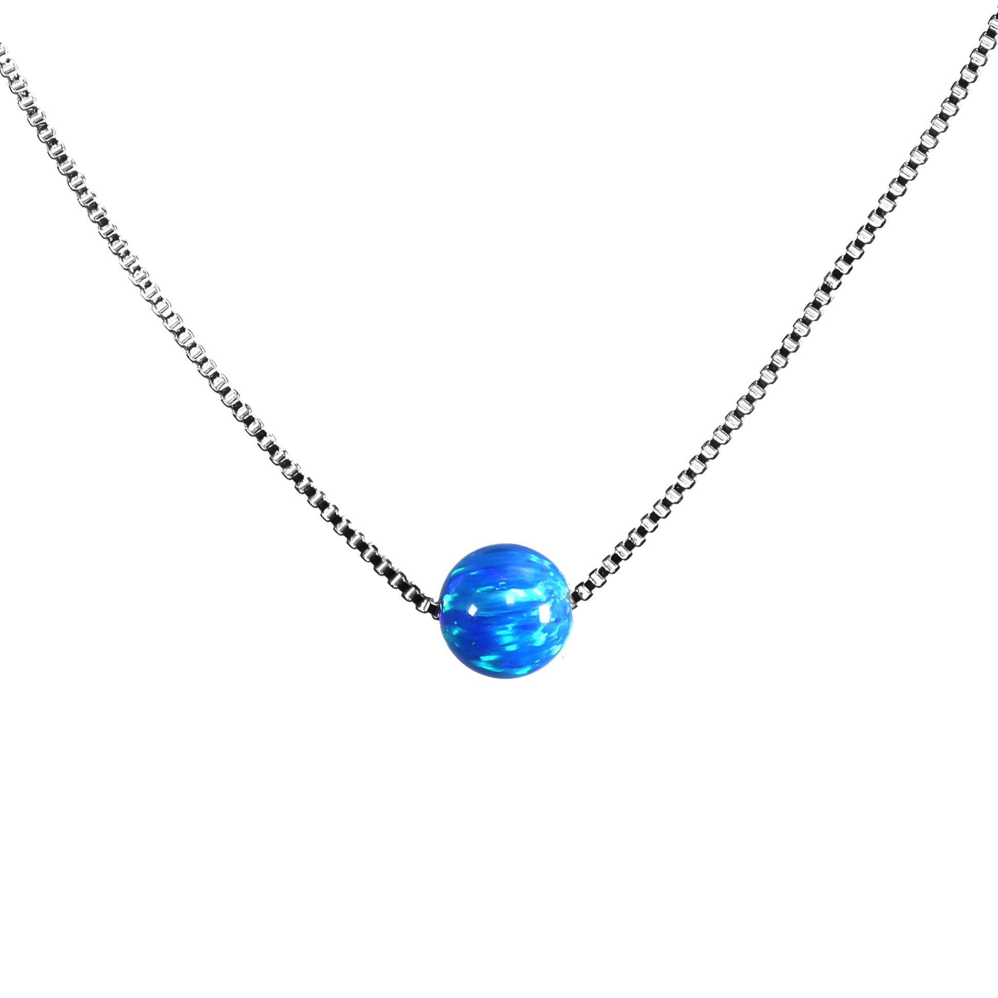💙 Edellis Blaue Opal Kugel Halskette – elegantes Collier mit schwebendem Opalstein auf einer fein gearbeiteten, weiß rhodinierten 925 Sterling Silber Venezianer-Boxkette.