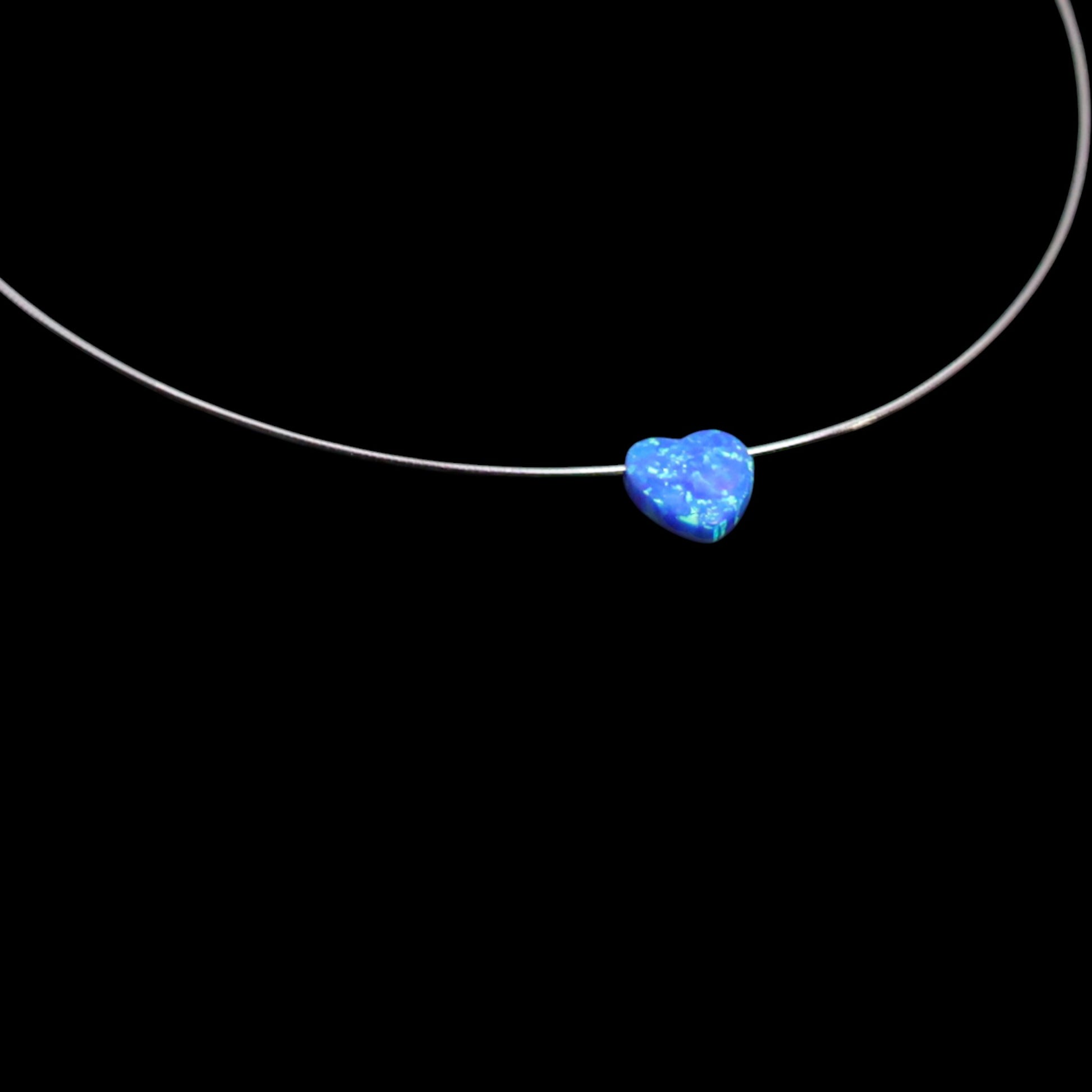 Ein Symbol der Liebe in schimmerndem Blau – die Edellis Omega-Halskette mit herzförmigem Opal und rhodiniertem Sterling Silber.