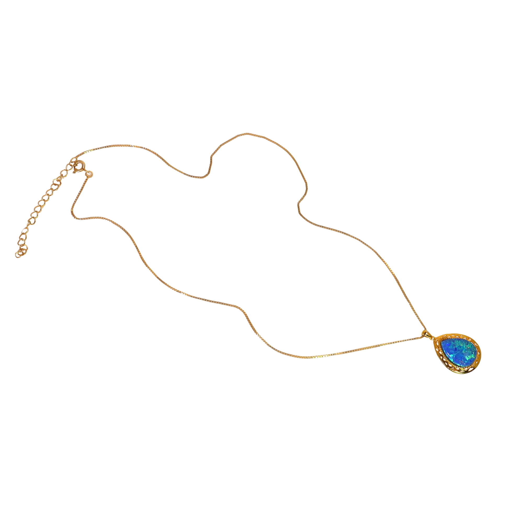 Edellis Tropfen-Halskette mit Weißem oder Blauem Opal – 925 Sterling Silber, Vergoldet oder Rhodiniert