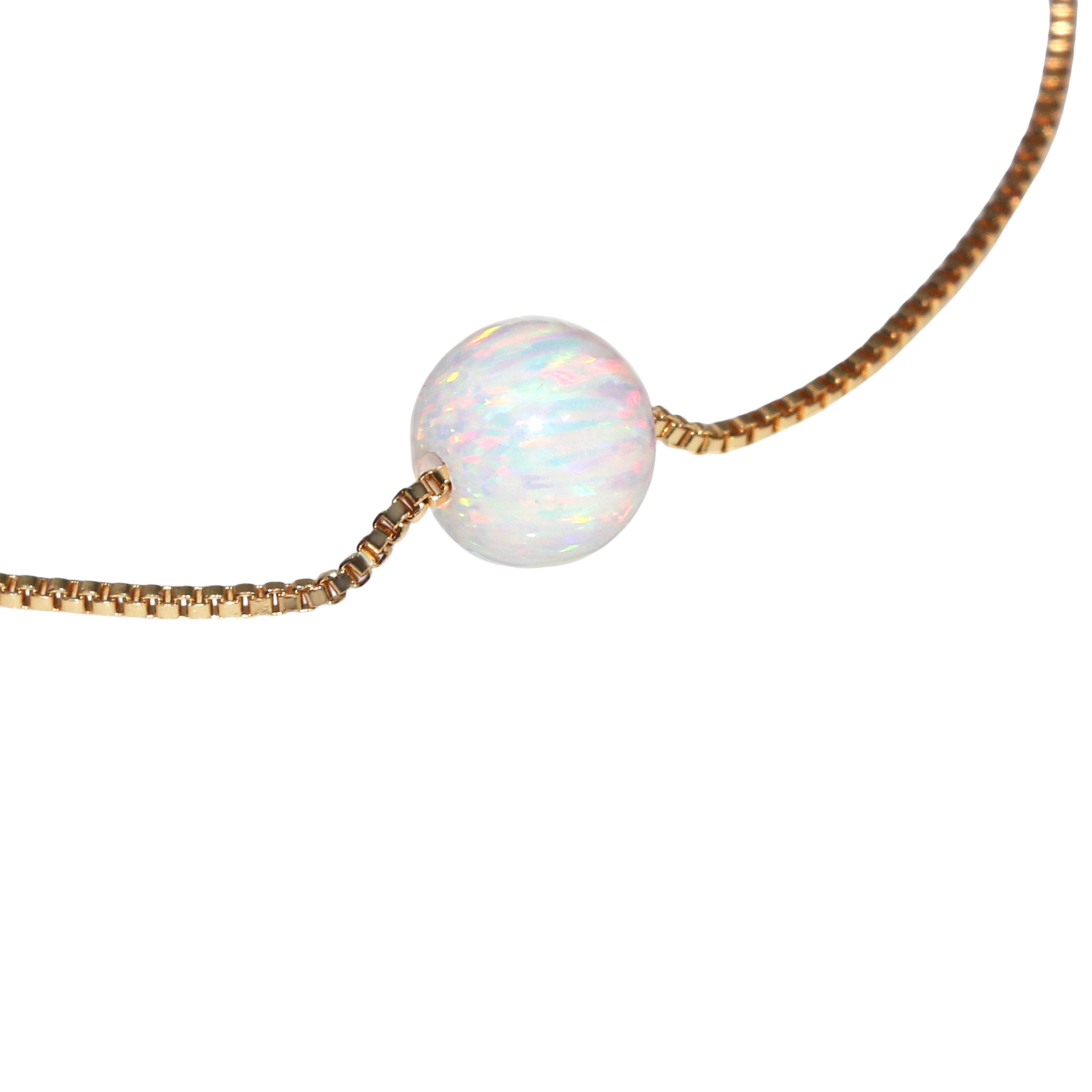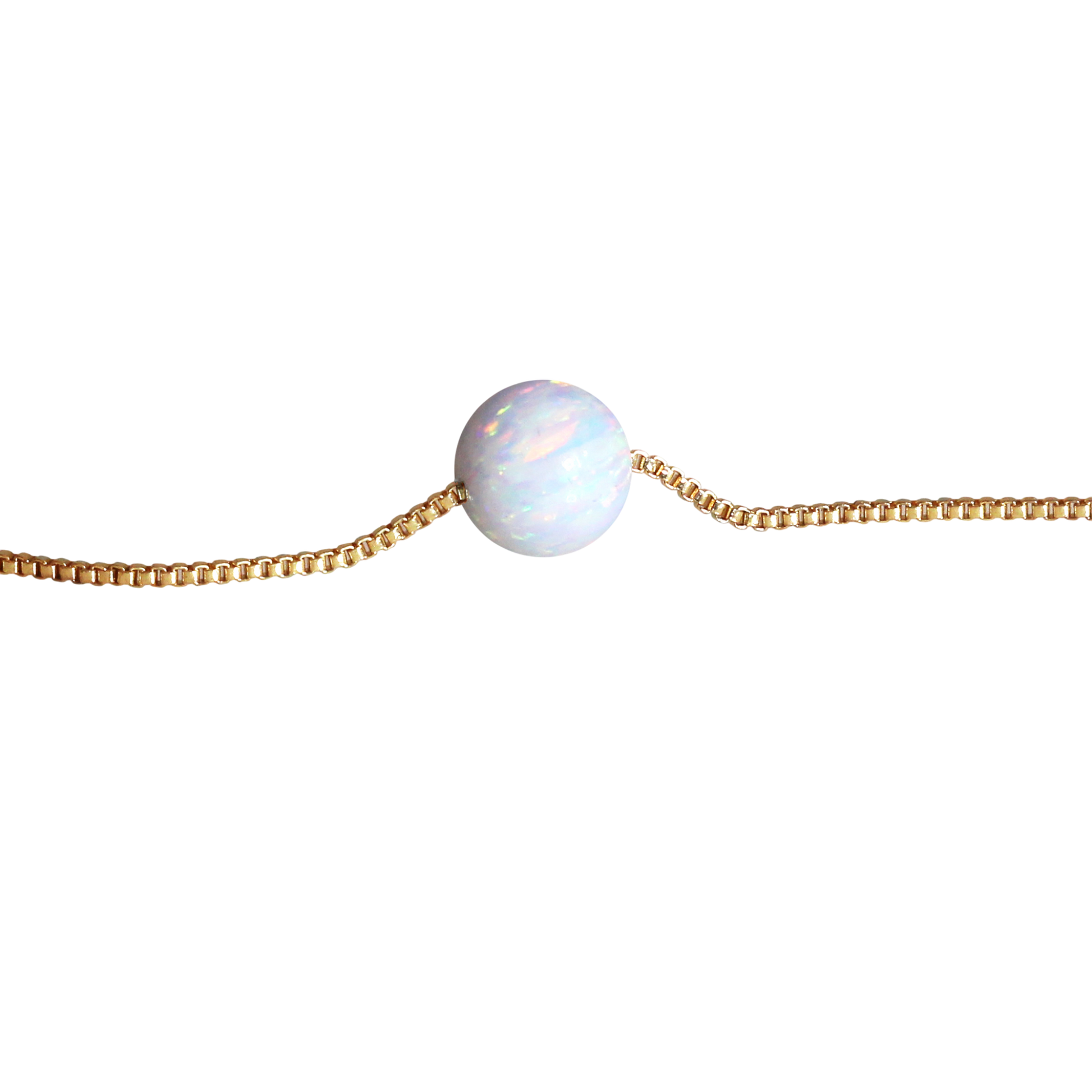 Halskette mit Weißem Opal 8 mm – 14 Karat Gold Gefüllt | Minimalistische Opal-Perlen-Kette