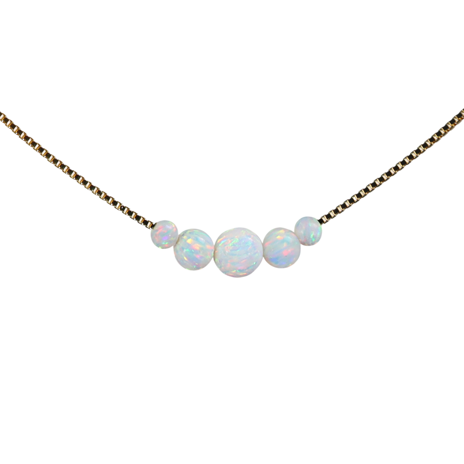Opal Collier Weiß – Feine Venezianerkette mit 5 weißen Opalperlen