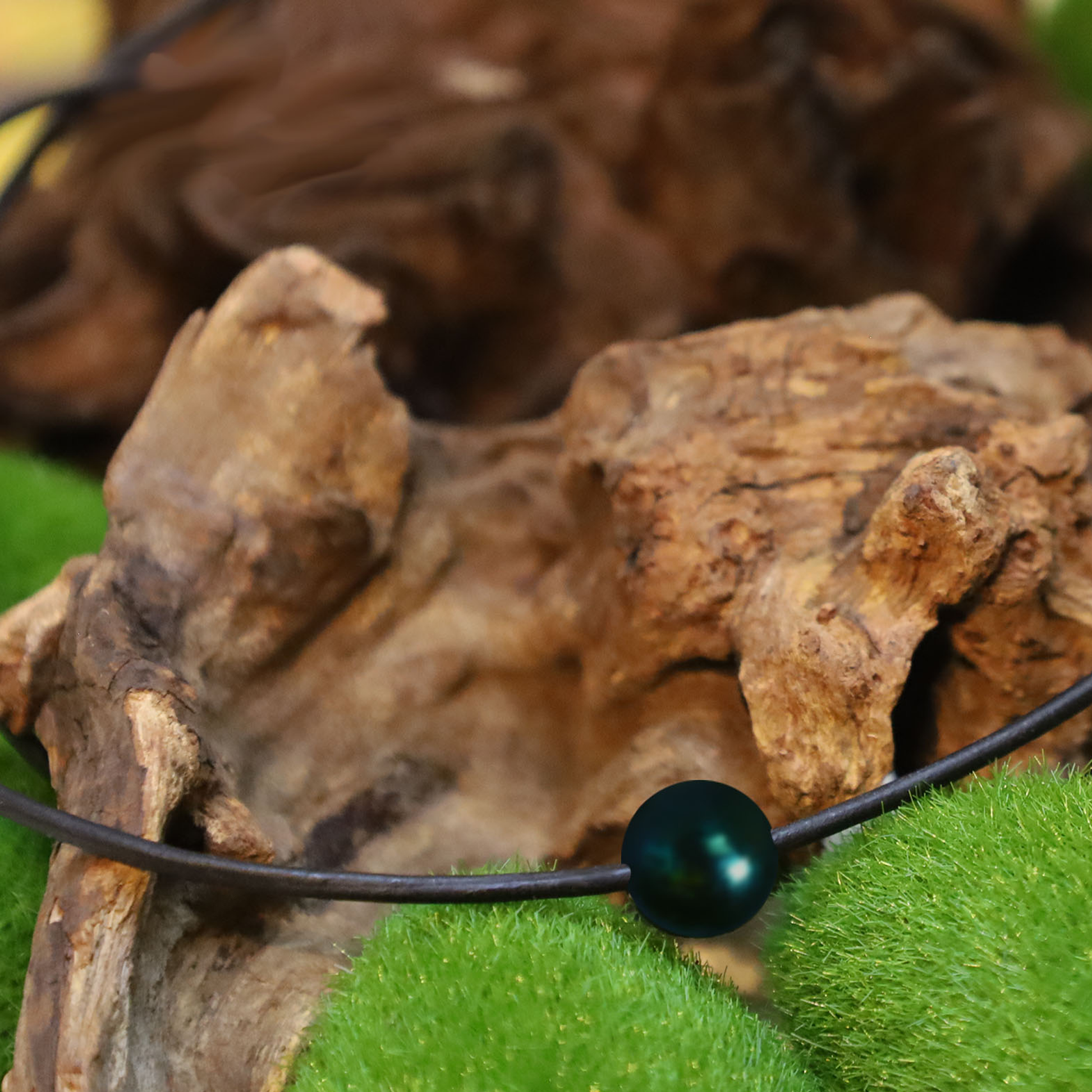 Noir – Schwarze Tahiti-Perle 9–10 mm auf Ziegenleder | 925 Silber