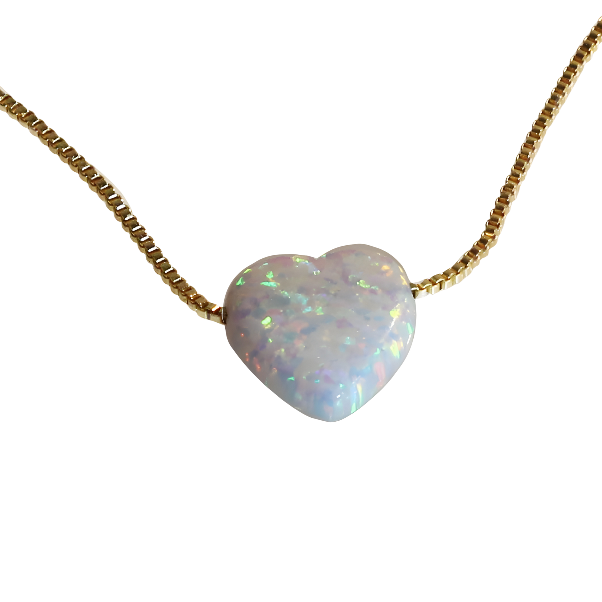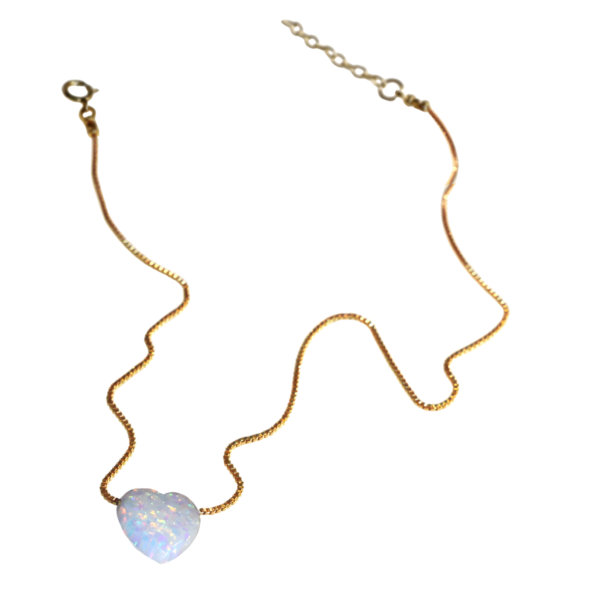 Weißer Opal Herzanhänger – 14K Gold Filled Venezianer Kette